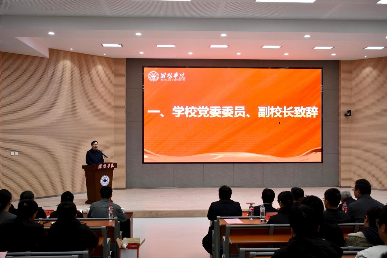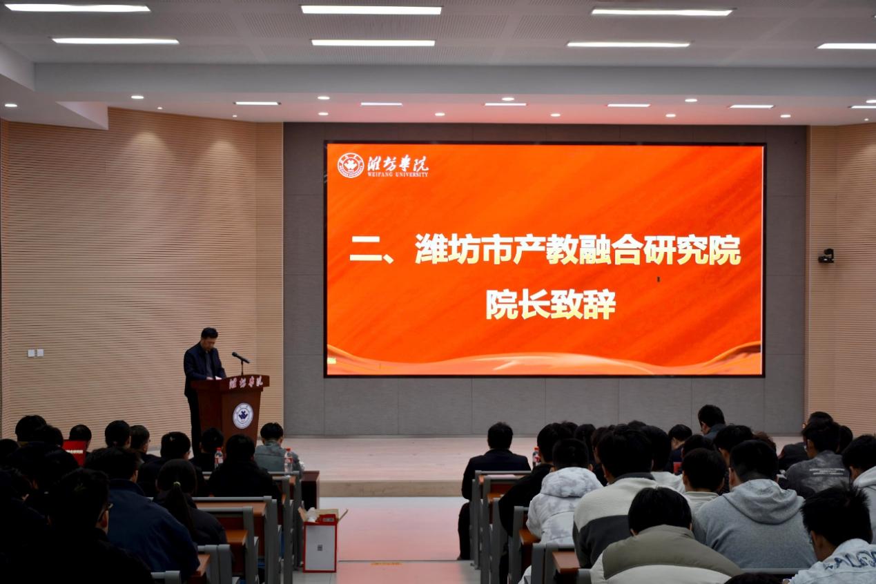 11月15日,高端智造装备产教融合共同体成立会议在学校举行。学校党委委员、副校长王成端,潍坊市产教融合研究院院长冯秀红出席活动并致辞。