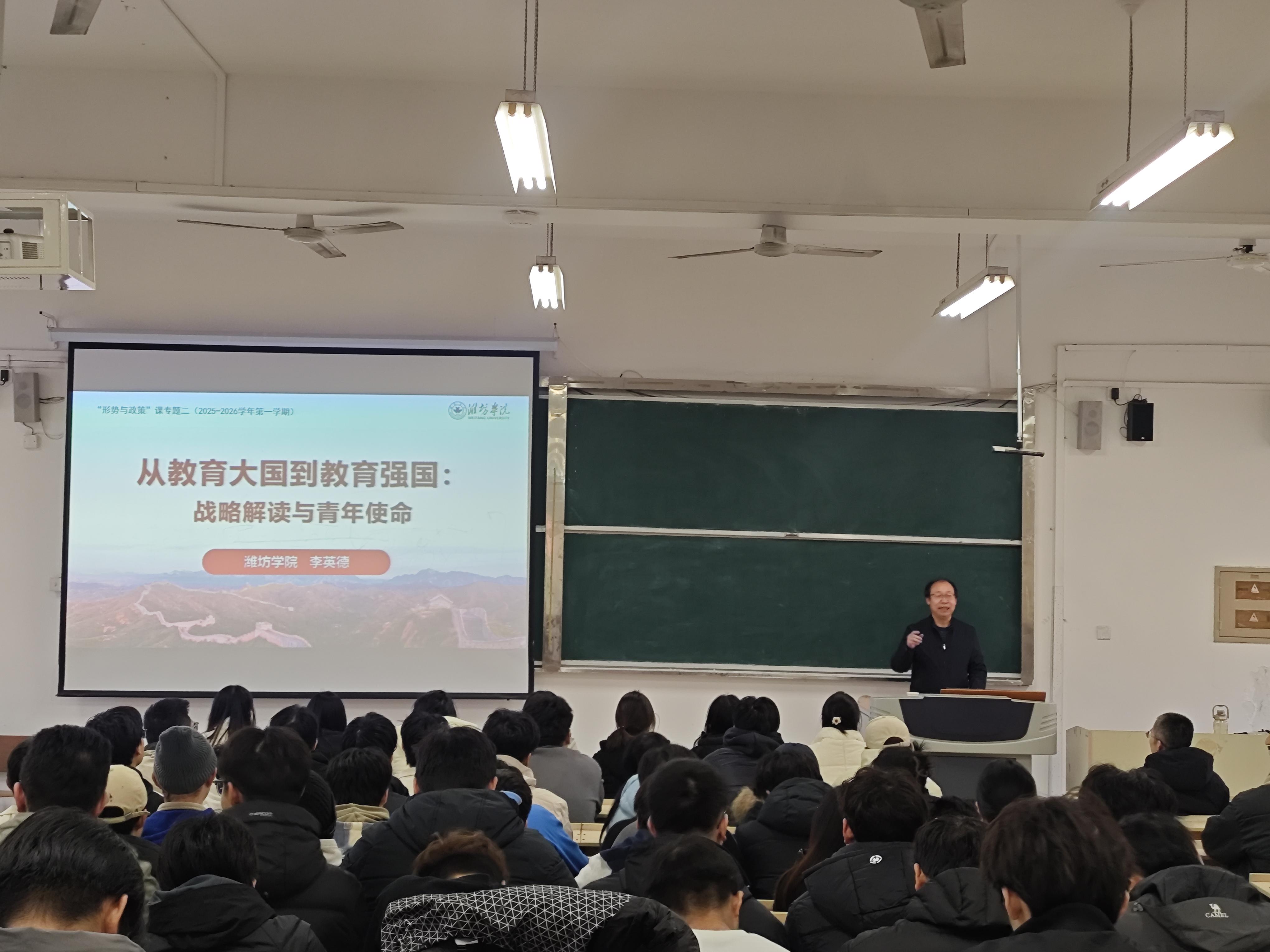 11月19日,学校党委委员、副校长李英德为机械与自动化学院师生讲授题为“从教育大国教育强国:战略解读与青年使命”的专题思政课。