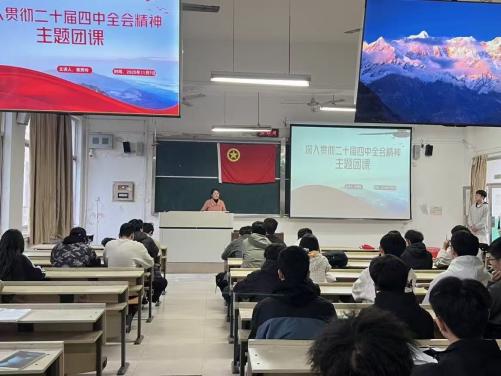 学生工作办公室主任崔秀玲老师为入团积极分子讲解二十届四中全会精神,鼓励入团积极分子吃苦耐劳,艰苦学习,要吃苦在先,享受在后,深入贯彻二十届四中全会精神,以历史主动精神克难关、战风险、迎挑战,集中力量办好自己的事,引导大家在学习及生活中保持战略定力,增强必胜信念,主动承担责任,投身实践。