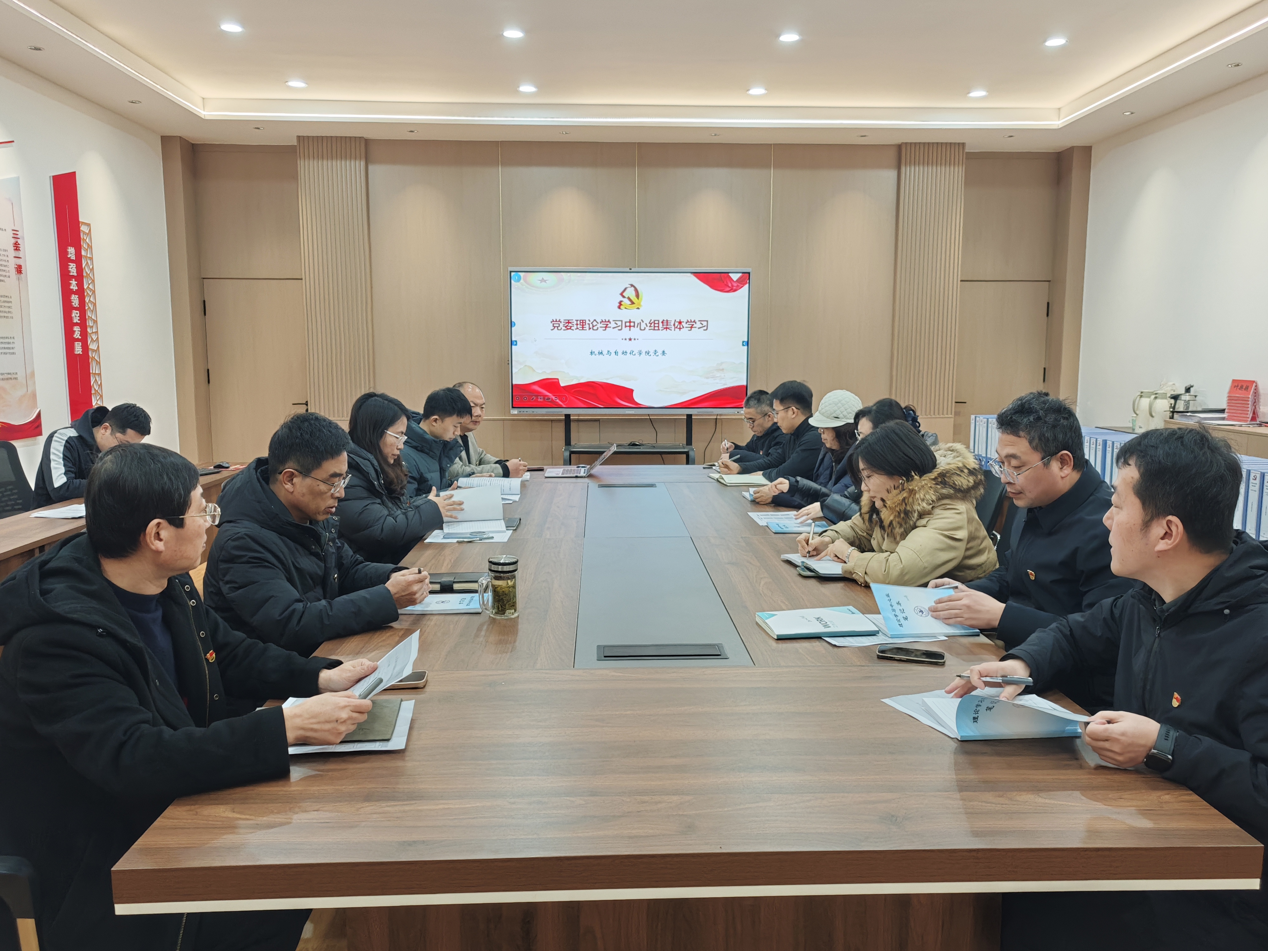 1月29日,机械与自动化学院党委理论学习中心组进行集体学习。党委书记张建伟主持会议并讲话,党委理论学习中心组成员参加学习。