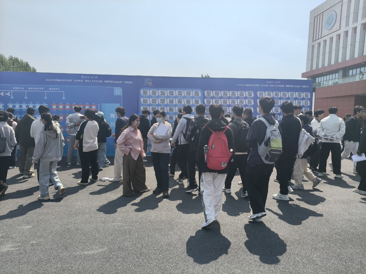 为拓宽毕业生就业渠道,搭建校企精准对接平台,助力学子高质量就业,4月24日上午,我院组织师生代表前往济南,参加 2026 年全国城市联合招聘 “山河四省” 青年人才交流会暨 “职聘齐鲁 乐业山东” 招聘活动。我院机械设计制造及其自动化、自动化、智能制造工程等专业学生在老师的带领下,共同参与本次大型跨省招聘对接活动。